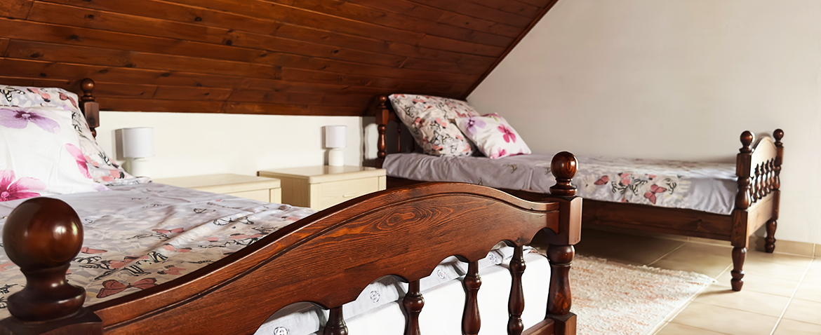 A tágas szobában 2 fő részére egyszemélyes ágyak vannak, friss ágynemű-, törölköző és pléd bekészítéssel, melyet az áraink tartalmaznak. A kényelmet fokozza a LED tv, légkondícionáló berendezés, hűtő és az ülőgarnitúra. A lépcső gyermekvédő ráccsal ellátott.
